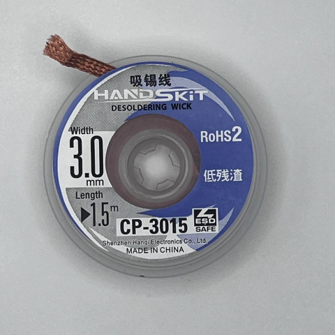 При великих обсягах встановлення компонентів друкованих плат складно обійтися без такого атрибута, як стрічка-обплетення для зняття припію. Стрічка для випаювання Handskit CP-3015 сильно полегшить роботу монтажника. Адже з її допомогою зняти надлишки припію набагато легше: досить прикласти фрагмент стрічки-обплетення для зняття припію до необхідної ділянки плати і збільшити температуру паяльником. Всі надлишки олова вберуться в провідники, а флюс у складі стрічки для зняття припію ефективно очистить доріжки друкованої плати.