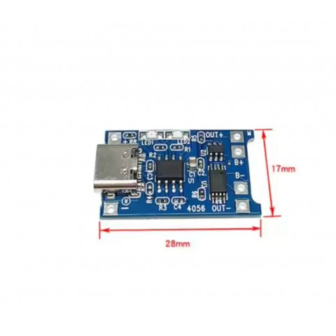 Модуль зарядки та захисту Li-ion TP4056 з роз’ємом Type-C призначений для заряджання одного літієвого елемента (3.7V) та одночасного живлення навантаження.